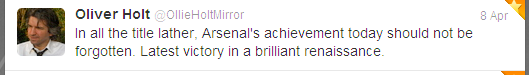 Maybe the greatest significance of Sunday is that it was the day we secured the re-signing of RvP: Sunday, April 8th, 2012 at 5.45 pm approx. At least in my opinion.