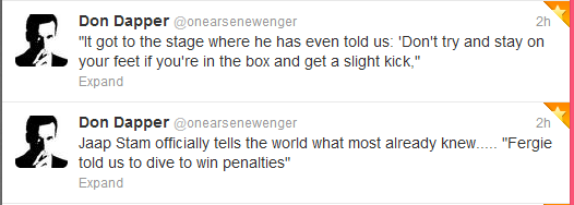“I feel adrift. It all happened so fast and it seems there is no way back now. I simply said that “Koscielny is world class and I always knew he would be. And he’s way better than Vermaelen.” And then, apparently, Twitter found a tweet in my name from a few months ago that said “Thank God Vermaelen’s back. He’s world class and Kozzie can’t hack the PL.” I’m pretty sure my account was hacked ‘cos I would never have said that last thing.”