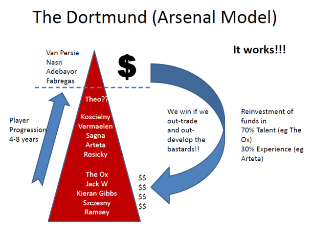 Great comments, mate. As our revenues increase (compared to existing costs) then we should be able to hold on to players longer. And while I agree it is highly undesirable to lose Fabregas and Nasri, both were special circumstances, the history of which we all know too well. Ideally, we would have kept both, but with Oily clubs around, you will lose the Nasris/Anelkas/Coles of this world ie money and “ambition” means they don’t stick around t long enough to earn it with the club that developed them.