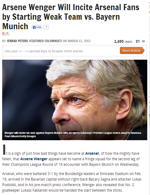 The British media patriotically added authentic looking stories. Meanwhile, Wenger is playing Fabianski instead of Szczesny. Brilliant. Fabianski makes completely different kinds of mistakes to Szczesny. That will throw Bayern off completely. He’s a cute whore, that Arsene, as they say in Dublin. Take that as payback for Lord Haw Haw, Munich! They’ll get a nice little surprise when they see our team sheet.
